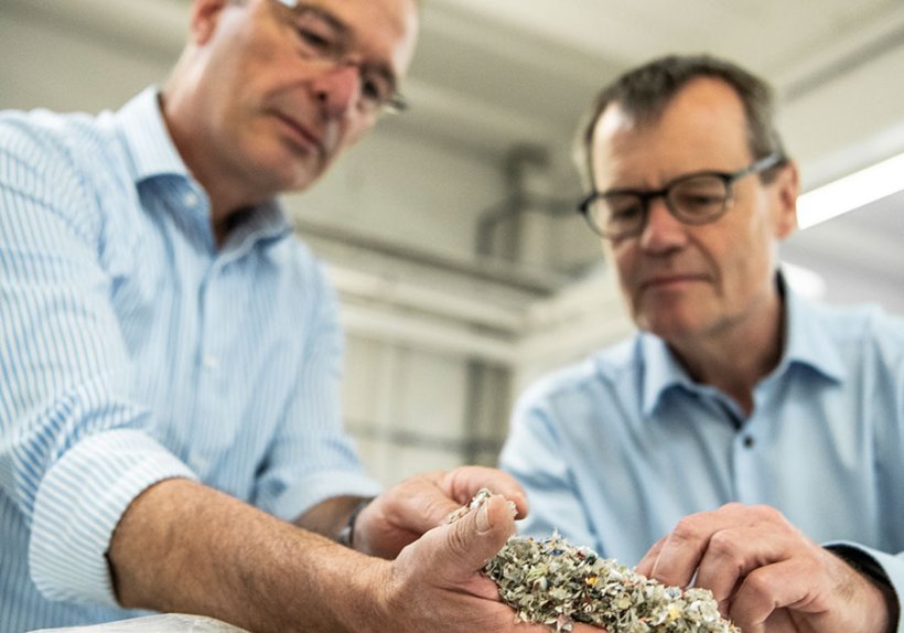 Unsere Technologien erlauben in der Tat zum einen PET auch aus Materialgemischen in reiner Form abzuscheiden und zum anderen dies auf wirtschaftlich attraktive Weise zu tun. Die Depolymerisation, das Zerlegen von Polymeren, gibt es zwar schon. Aber wir überführen diese Technologie gemeinsam mit der TU Braunschweig in einen kontinuierlichen, damit wirtschaftlichen Prozess. Vereinfacht gesagt, transportieren wir das zu recycelnde Material – ob Verpackungen oder Textilien – über ein doppeltes Schneckengewinde, dem Extruder, durch eine Art Kammer. An deren Ende treten die Ausgangsmaterialien für neues, hochreines PET und die restlichen Materialien aus und werden dann weiter gefiltert. Die kontinuierliche Depolymerisation ist der Schlüssel. Sie erlaubt einen 24/7-Betrieb und macht das Ganze ökonomisch und ökologisch so wertvoll. Dazu trägt bei, dass unser System mit relativ niedriger Temperatur arbeitet, was Energiekosten spart. Und es ist ein echter Beitrag zu mehr Nachhaltigkeit: Wir haben mittels Ökobilanz ermittelt, dass wir mit unserer Technologie bis zu 60 Prozent weniger Treibhausgase produzieren als bei der PET-Produktion aus Erdöl.