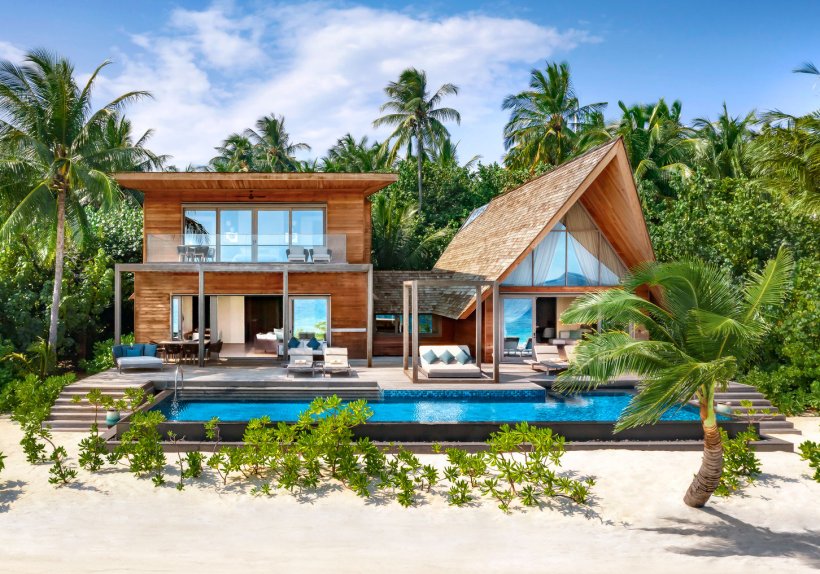 Nur rund eine Stunde per Wasserflugzeug von Malé entfernt, liegt das Resort verborgen im Dhaalu-Atoll – eingebettet in üppige Vegetation und umgeben vom türkisfarbenen Ozean. Bereits beim Anflug wird klar: Dies ist kein klassisches Inselresort. Entworfen von WOW Architects aus Singapur, gleicht die Anlage einer organischen Skulptur. Die ikonische Whale Bar spannt sich wie ein Mantarochen über die Lagune, Überwasser-Villen erinnern an Korallenformationen. Viel Glas, Naturstein und edle Hölzer schaffen Transparenz und fließende Übergänge. Die 77 Villen, am Strand oder über dem Wasser gelegen, definieren Großzügigkeit neu. Jede verfügt über einen privaten Pool, weitläufige Sonnendecks und maßgefertigte Interieurs. Die John Jacob Astor Estate zählt zu den größten Overwater-Villen der Malediven: drei Schlafzimmer, Spa, Fitnessraum, Kinobereich und Infinity-Pool mit scheinbar grenzenlosem Horizont. Das Caroline Astor Estate beeindruckt mit 67 Quadratmetern Poolfläche und beherbergt bis zu sieben Gäste – ideal für Familien oder private Retreats. Wer diskrete Romantik sucht, findet sie in der César Balsar Villa oder den Sunset Overwater Villen, die den Sonnenuntergang als tägliches Naturschauspiel inszenieren.