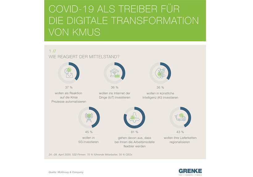 Auch in Krisenzeiten muss investiert werden, beispielsweise in die Digitalisierung. Ein cleverer Mix aus Factoring und Leasing macht sich gerade dann bezahlt. Denn beide Instrumente bringen Liquidität. Und sie verschaffen den notwendigen Handlungsspielraum in bewegten Zeiten. Das muss nicht kompliziert sein. Mit einem global tätigen Finanzierungsexperten wie GRENKE geht beides sehr einfach, schnell und persönlich – von Unternehmer zu Unternehmer.